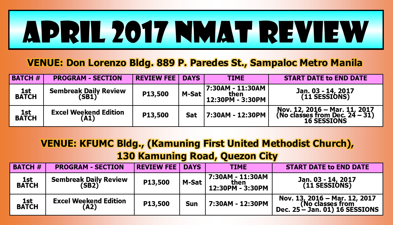 • ONLINE & F2F NMAT REVIEW